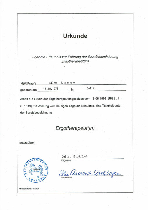 Zertifikat Ergotherapeutin